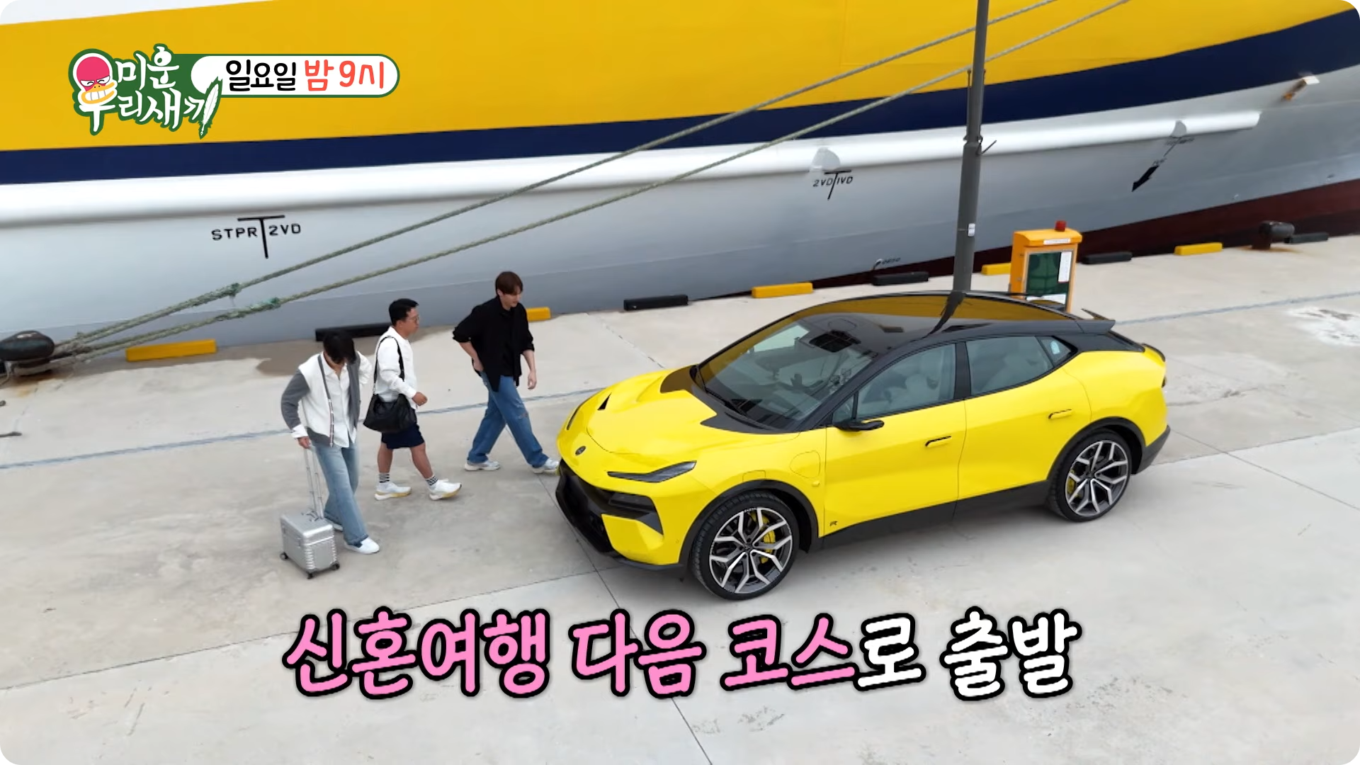울릉도에 도착하자 등장한 건 노란색 슈퍼카! 일반적으로는 SUV 차량이 더 적합한 지형이지만, 김준호는 방송미를 위해 초호화 스포츠카를 렌트했어요. 실제로 울릉도의 해안 도로는 경치가 빼어나 드라이브하기 딱 좋습니다.
