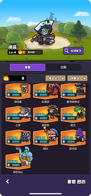 | 3티어 | 산적왕, 스카, 프린세스, 대너 |